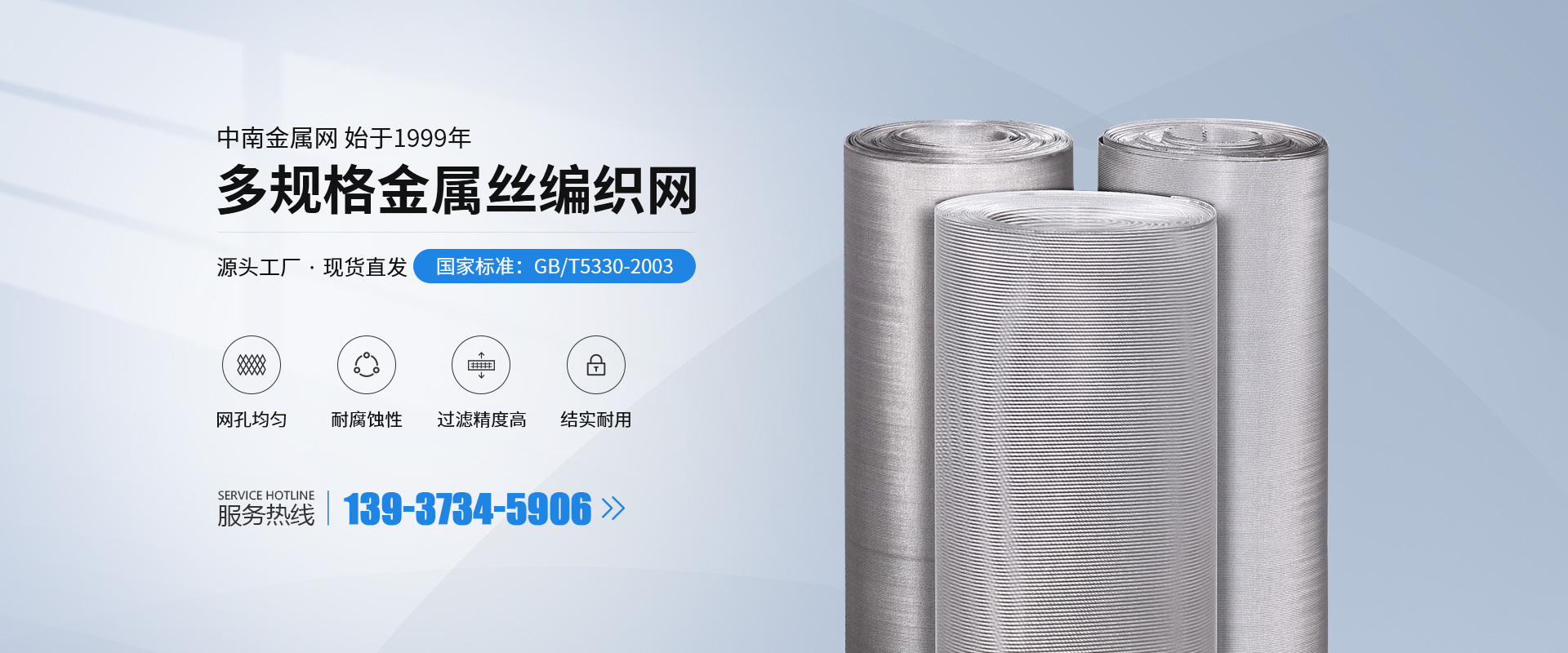 新鄉(xiāng)市中南金屬網(wǎng)有限公司成立于1999 年,公司設(shè)在河南省新鄉(xiāng)市。在過去的十幾年來,我們堅持以嚴格的管理措施、雄厚的技術(shù)力量、良好的工藝設(shè)施,質(zhì)量上乘、信譽為上為原則,把樹立良好的企業(yè)形象為工作宗旨,歷經(jīng)市場的嚴峻考驗并贏得廣大用戶的一致好評。金屬絲網(wǎng)編織結(jié)構(gòu)形式有平紋和斜紋兩種方法,嚴格按照航空軍品標準HB1862—93和標準GB/T5330—2003標準,并等效采用國際標準ISO9044—90標準組織生產(chǎn)。 公司擁有生產(chǎn)設(shè)備和技術(shù)人員,主要生產(chǎn)不銹鋼篩網(wǎng)、磨料網(wǎng)、金屬絲編織方孔網(wǎng)、篩網(wǎng)、濾網(wǎng) 、篩分網(wǎng) 、過濾網(wǎng)、不銹鋼網(wǎng)、絲網(wǎng)、金屬絲網(wǎng)、金屬絲編織密紋網(wǎng)、特種網(wǎng)、不銹鋼密紋網(wǎng)、荷蘭網(wǎng)、席型網(wǎng)。絲網(wǎng)材質(zhì)選用黃銅、錫青銅、不銹鋼、純鎳等。席型網(wǎng)規(guī)格7/44目—500/3500目,方孔網(wǎng)規(guī)格1/2目—500目,網(wǎng)孔25mm—0.028mm,產(chǎn)品廣泛用于機械、化工、化纖、石油、醫(yī)藥、橡膠、濾芯、固體果粒篩分、流體過濾以及裝飾、防塵、骨架支撐等。 我們以“視質(zhì)量為生命、以信譽求生存、以科技促發(fā)展、以優(yōu)*產(chǎn)品為客戶服務(wù)”的經(jīng)營理念,真誠的希望與各界人士攜手并進,共創(chuàng)輝煌!